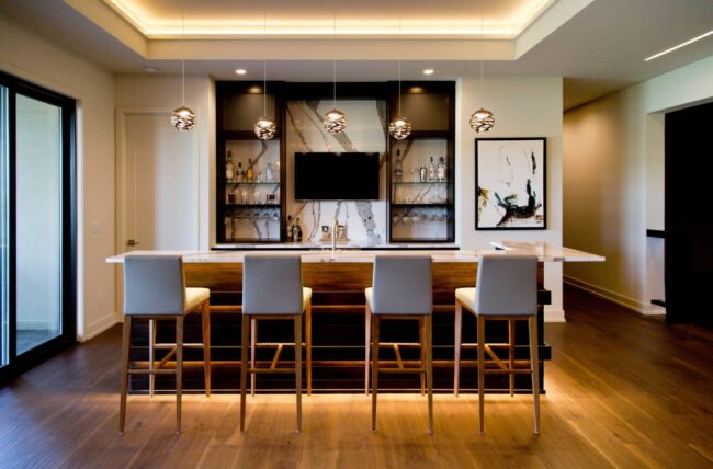 This lighting approach transforms ordinary home bars into inviting entertainment spaces that rival professional establishments.